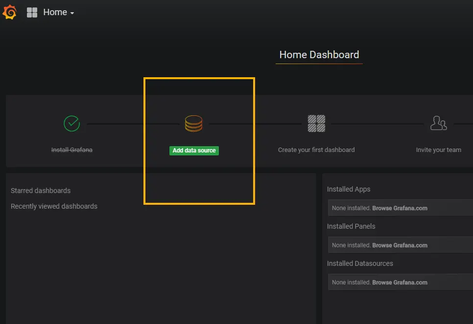 看的很明显,在Grafana上有好几个步骤需要做,这里Install Grafana已经完成了,接下来我们需要:
