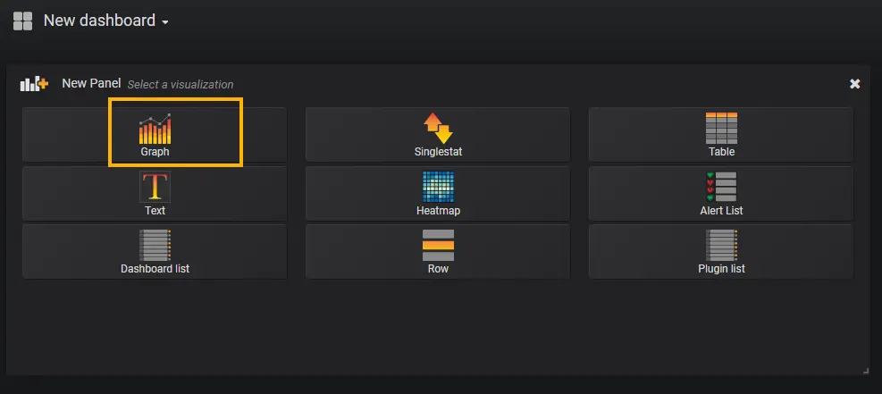 这里有很多类型的仪表盘供选择,我们选用最常用的Graph就好