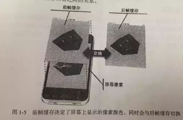 iOS使用的是双缓冲机制。即GPU会预先渲染好一帧放入一个缓冲区内(前帧缓存),让视频控制器读取,当下一帧渲染好后,GPU会直接把视频控制器的指针指向第二个缓冲器(后帧缓存)。当你视频控制器已经读完一帧,准备读下一帧的时候,GPU会等待显示器的VSync信号发出后,前帧缓存和后帧缓存会瞬间切换,后帧缓存会变成新的前帧缓存,同时旧的前帧缓存会变成新的后帧缓存。