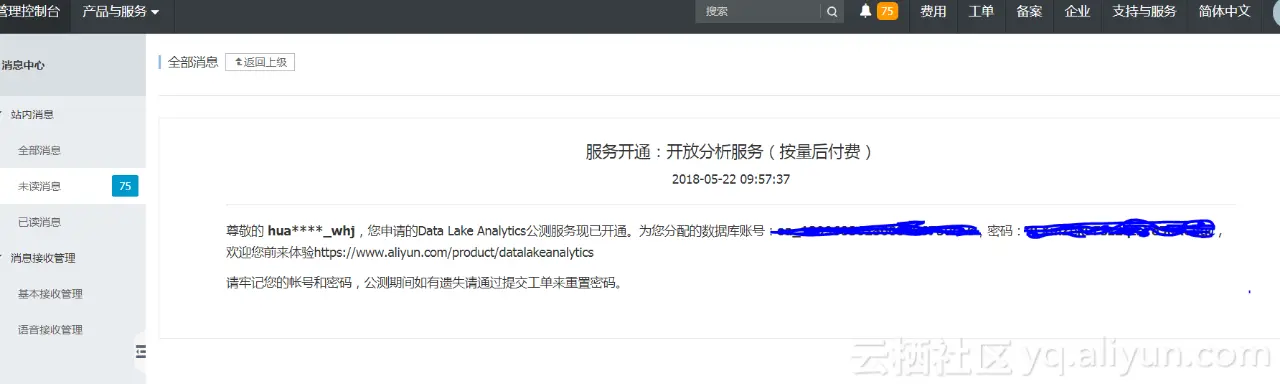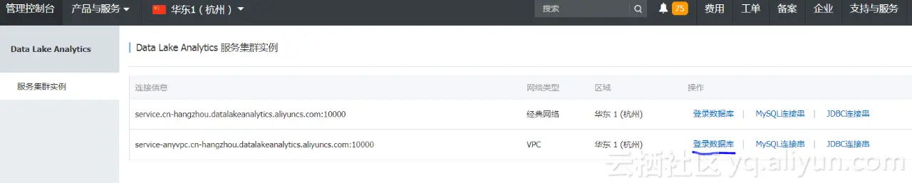 备注:目前DataLakeAnalytics公测中,需提交公测申请,开通试用。