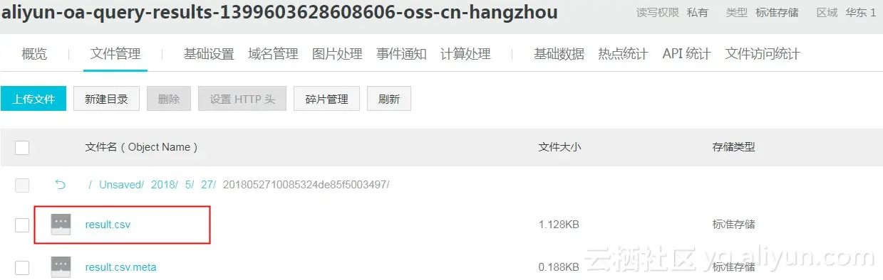 查看导出OSS的结果文件