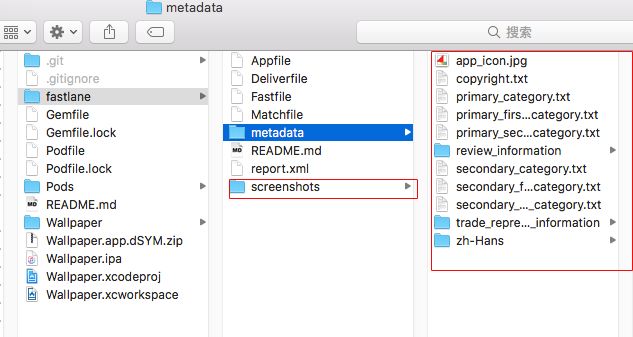 具体的安装和初始化,本文稍后会详细讲述,先带大家分析一下安装后的fastlane的目录结构。红色区域就是多出来的文件。本项目是笔者的一个APP Store上线项目,大家可以点击这里获取。