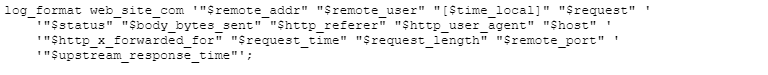 配置文件路径(/var/log)和文件名称(access_log),其中NGINX日志配置为: