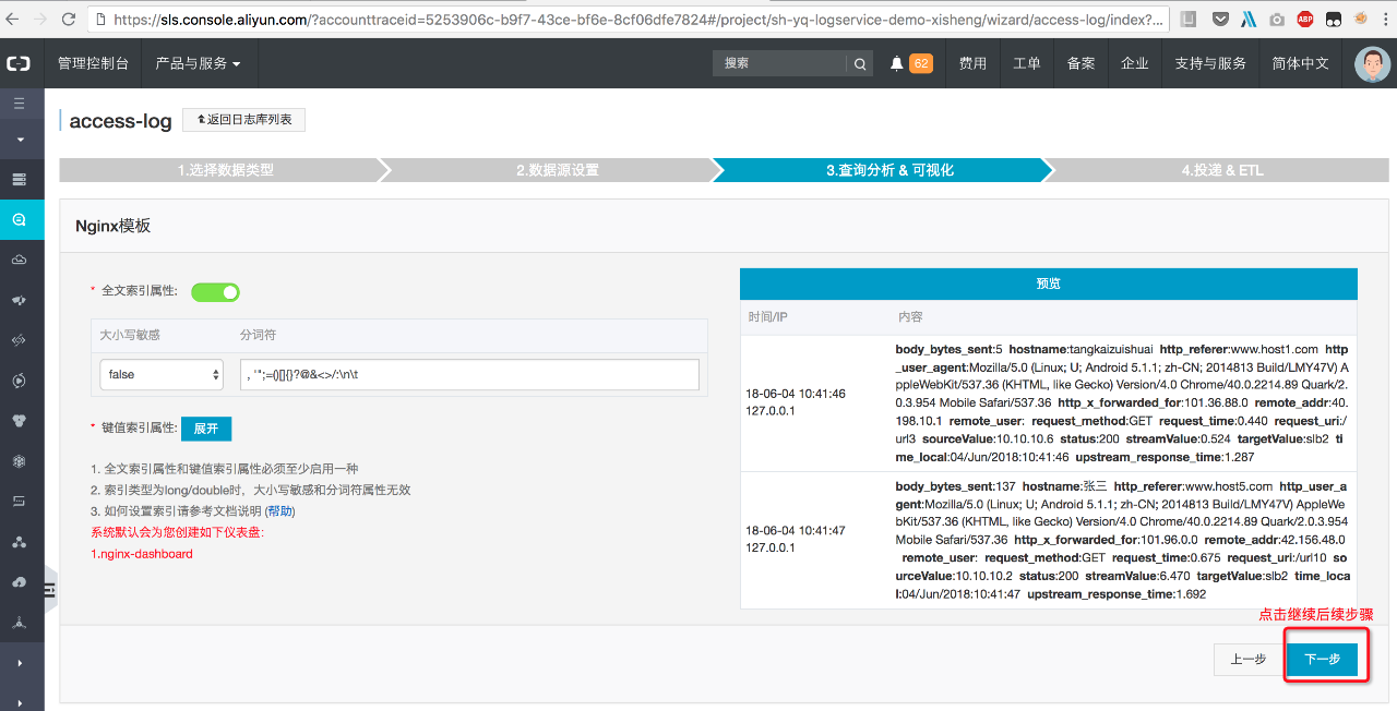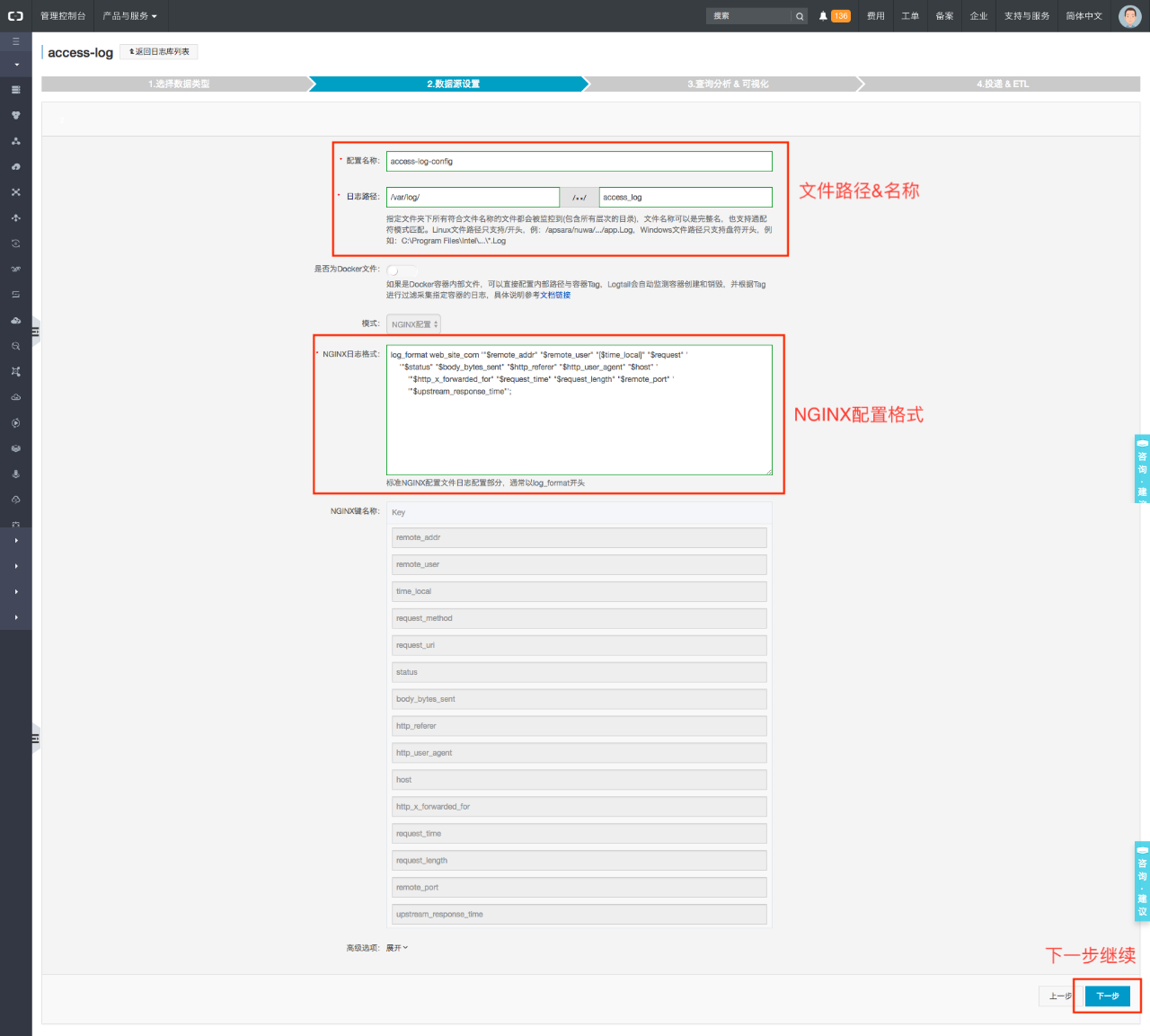向导创建NGINX日志采集