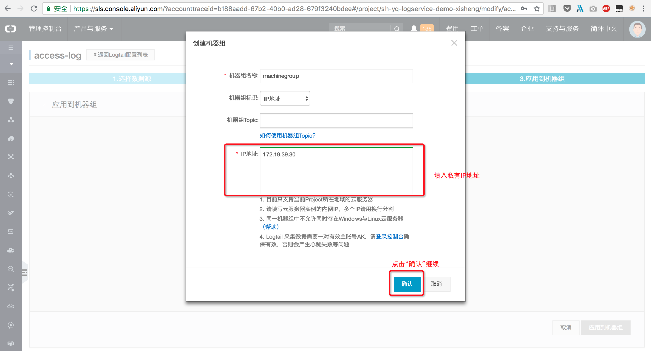 创建机器组(打开ECS控制台获取机器IP地址)