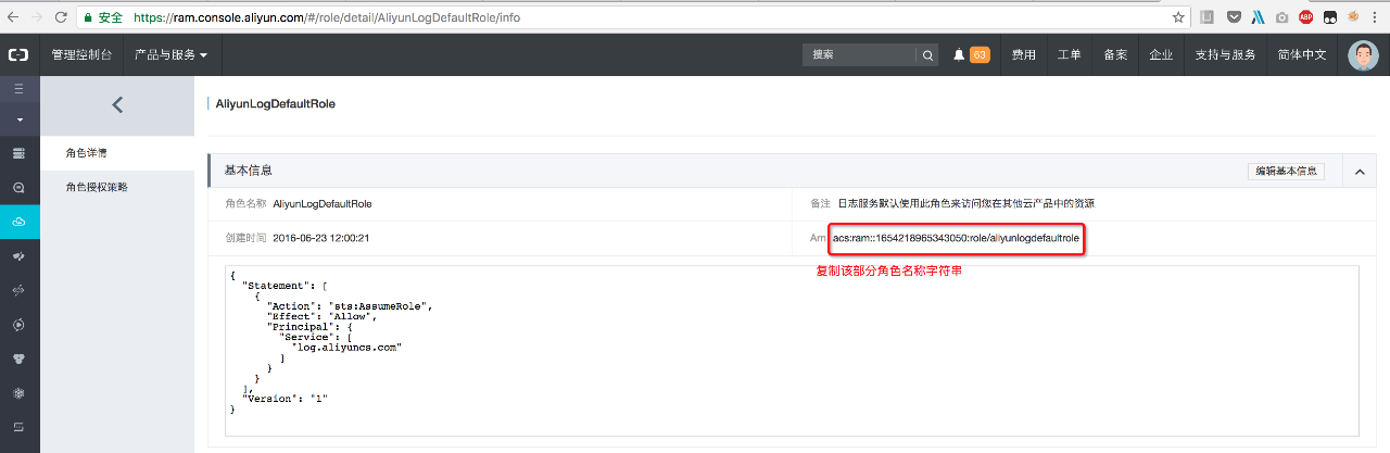 - 生成RAM角色用于同步日志数据至OSSBucket