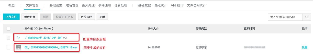等待1-2min后,可以在OSS中看到生成的数据目录