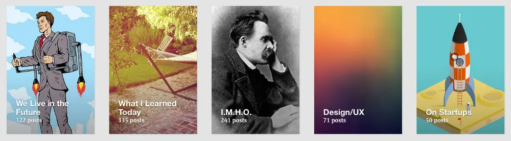 同时你可以注意一下这些 Medium 的收集缩略图用了一点点的文字阴影来更加提高识别度。这些人真的非常棒!