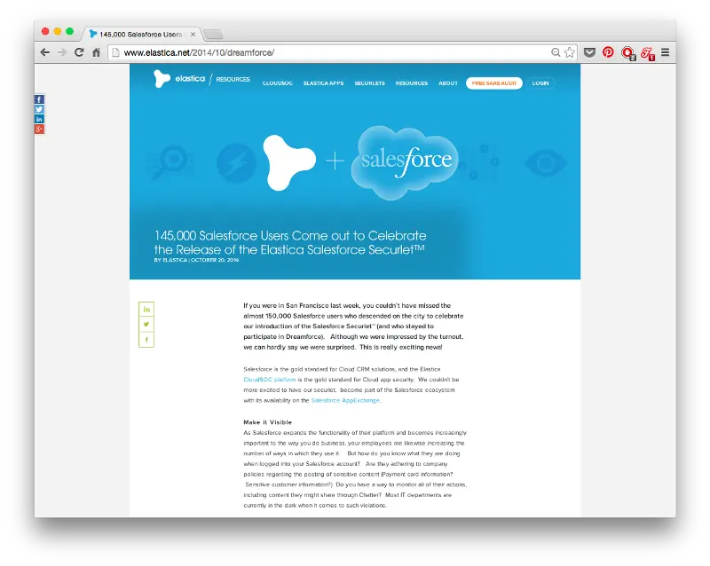 在这句标题“145,000 Salesforce Users Come out to Celebrate…”有一个让透光度渐变的框。你应该可以很简单的注意到高对比度的照片下这个深蓝色的背景。