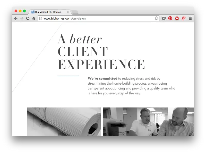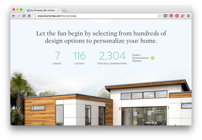 这个完美设计的 Blu Homes 网站有很多大标题,但是需要强调的字都是小写 —— 太多的强调会看上去用力过猛。