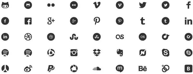 Entypo Social (以上)。这是个图标字体。没有错,一旦你用了 Entypo,你会在所有地方看到它,但是这些社交网站的图标真是太棒了。不想在小小的有颜色的圈圈里重新创造一堆社交网站的 logo?没错,我也不想。在 Entypo.com 可以找到。