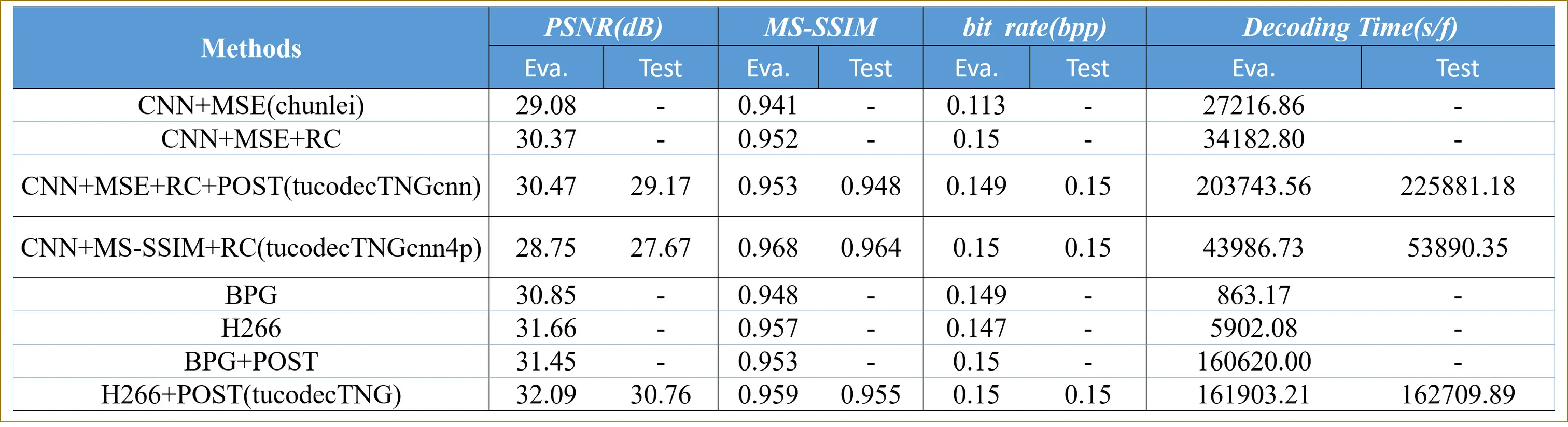 这次的挑战赛主要从PSNR、MOS、MS-SSIM和解码速度(评分较高的队伍里解码速度最快)这四个方面进行评比。PSNR、MOS、MS-SSIM这些都是业界通用的图像质量评估(Image Quality Assessment,IQA)标准。