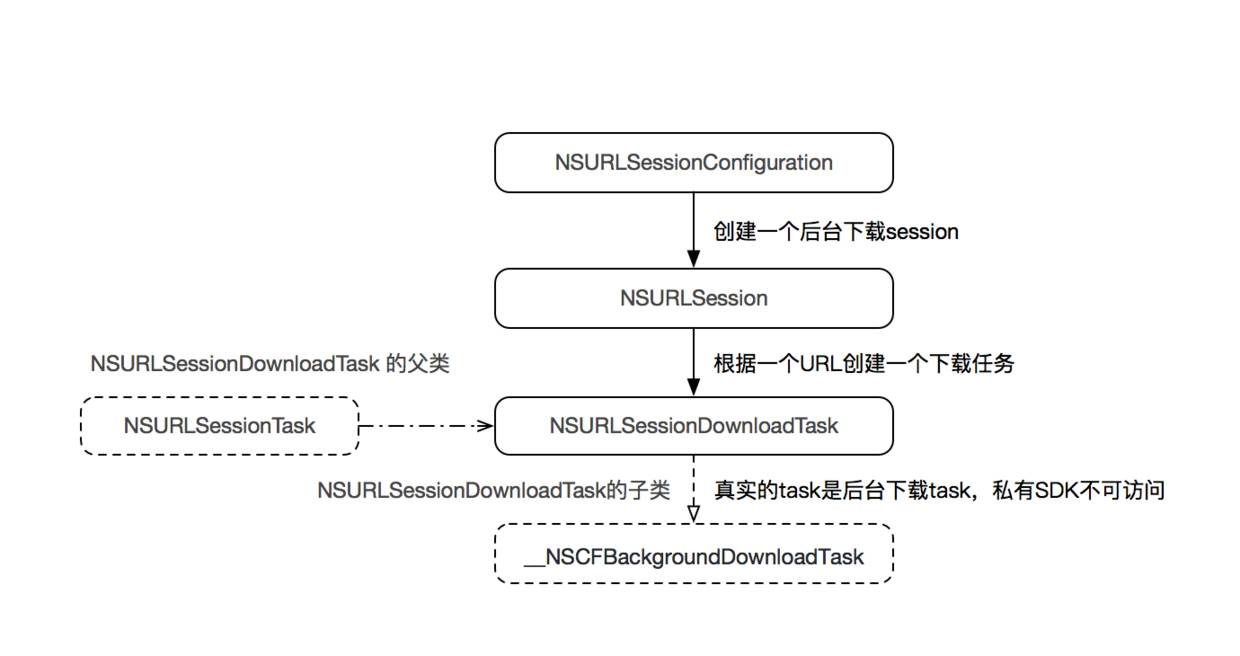 YCDownloadSession 内部标识一下下载task的时候,使用的下载资源的URL来标识。如果该资源被301/302重定向到一个另一个URL后,会存在两个URL。标识用的URL在代理回调的NSURLSessionTask或者NSURLSessionDownloadTask的currentRequest中取的url,这样就出现了一个问题,重定向后通过URL拿不到下载的task;originalRequest属性可以拿到重定向前的URL使用该属性解决这个问题。苹果下载相关SDK关系图可看它们之间关系。