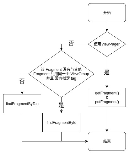 - FM.getFragment 适合多个 Fragment 共用一个 ViewGroup 同时还无法为Fragment指定Tag的情况(如ViewPager)