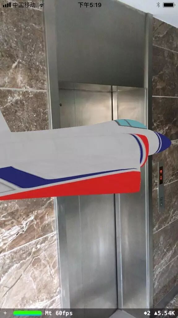 在你的设备上运行项目,如果没有异常的话应该能看见实时摄像头视频,还有一架飞机的 3D 模型,这个模型被放置在了物理空间中。