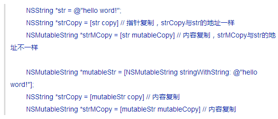 在非集合类对象中,对不可变对象进行copy操作,是指针复制,mutableCopy操作是内容复制;