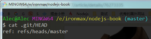 还可以在命令行中输入 cat .git/HEAD 查看当前 HEAD 指向哪里。