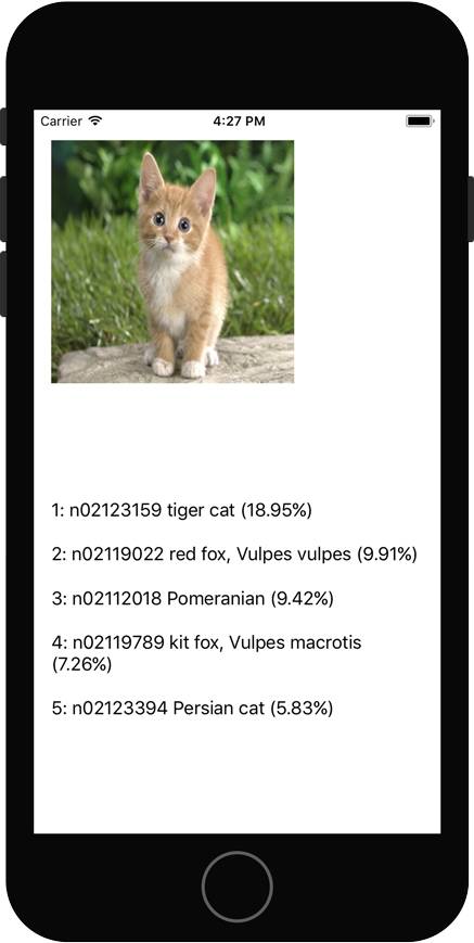虽然这个 App 不是很有趣 —— 它只输出了一张静态图片的前五个预测值 —— 但却展示了使用 Core ML 是多么的简单。几行代码就够了。