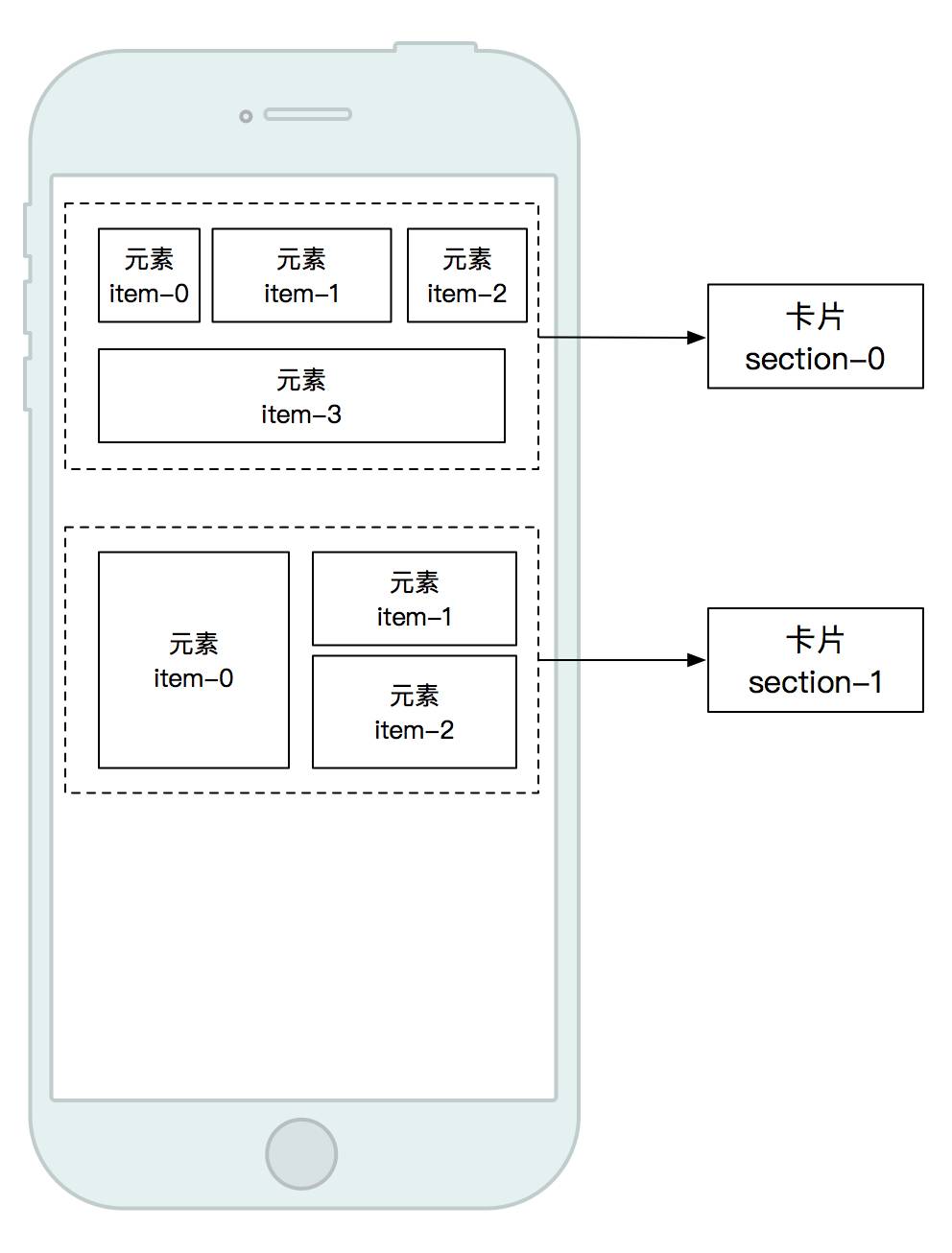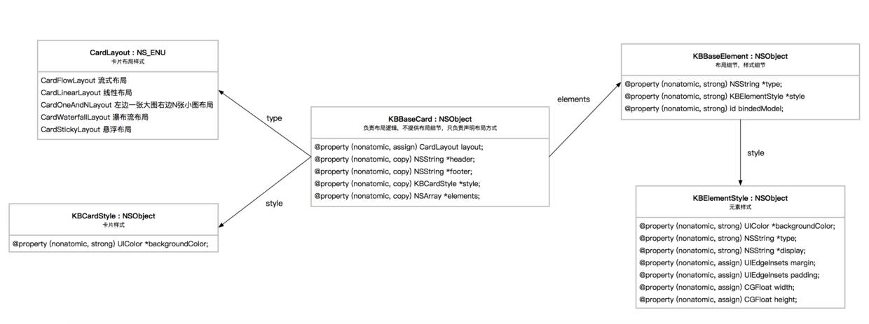 每个UIViewController都是一个页面,页面是由一个个卡片组成的,卡片其实就是代表了一个布局样式,每个卡片是由一个个元素组成的,元素其实指的就是卡片布局样式下的各个banner,对应的JSON数据结构如下: