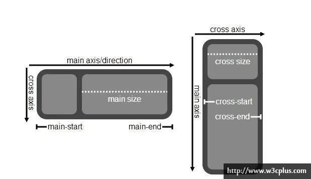 侧轴(cross axis):垂直于主轴称为侧轴。它的方向主要取决于主轴方向。