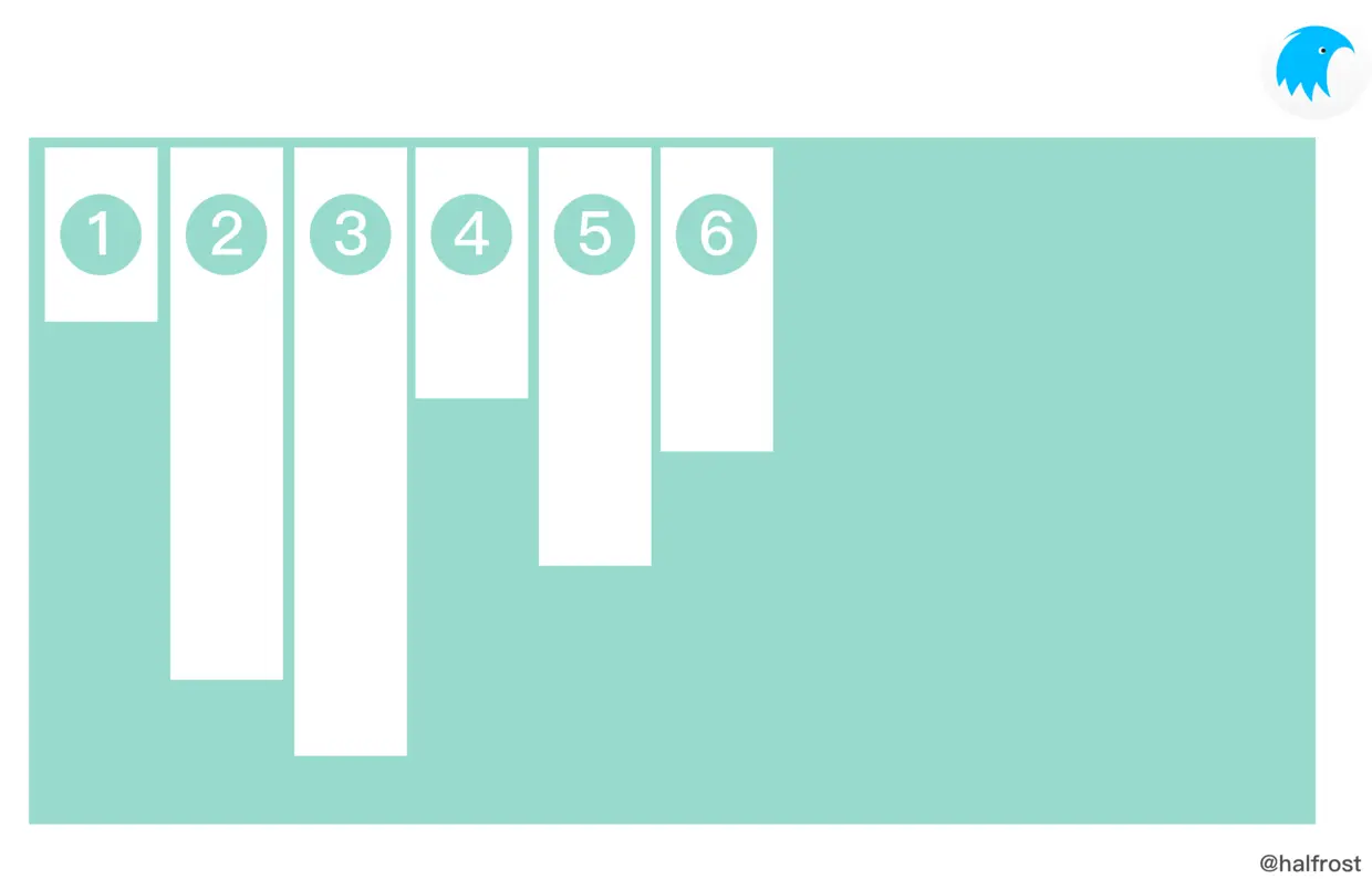 在上图这种水平是侧轴的情况下,子视图是沿着侧轴(cross axis),从侧轴起点(cross-start)到侧轴终点(cross-end)排列的。