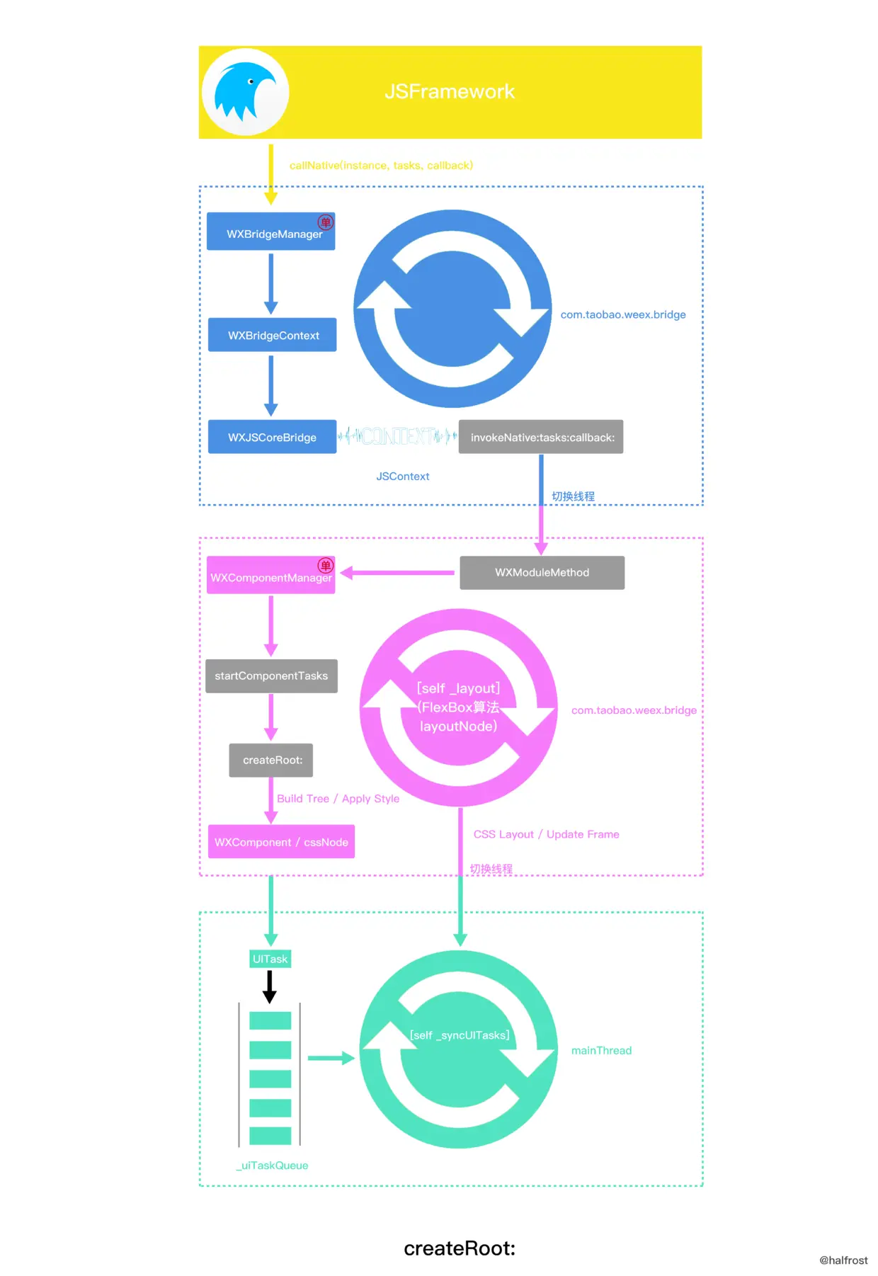 注意,WXComponentManager的这两步操作,又要切换线程,切换到“com.taobao.weex.component”子线程中。