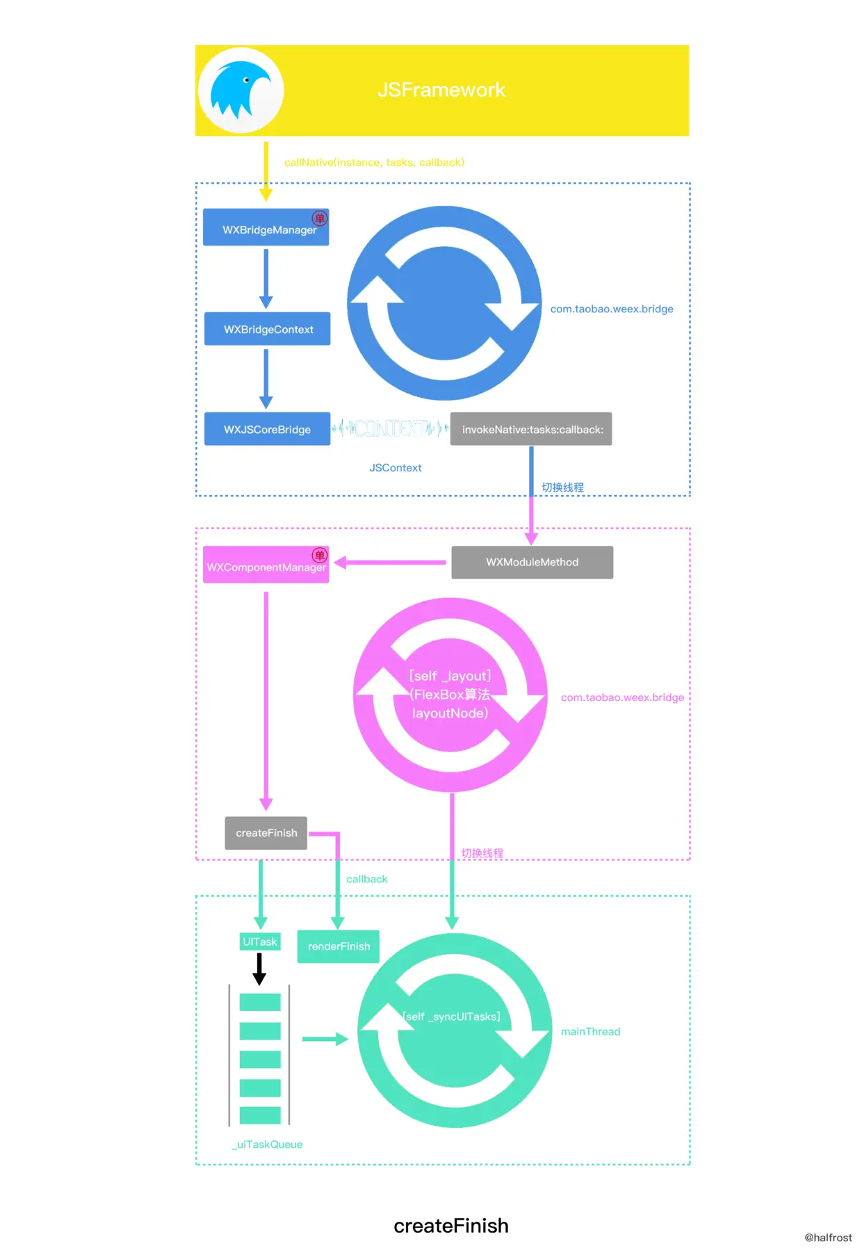 这里最终也是会调用到WXComponentManager的createFinish。当然这里是会进行线程切换,切换到WXComponentManager的线程“com.taobao.weex.component”子线程上。