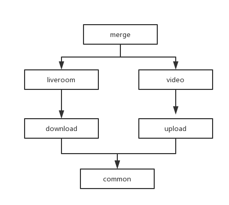 最上层的是我们要生成的最终的merge.aar 他会合并直播间liveroom模块,合并video视频模块,而对应的模块也会依赖下层的组件,如何依赖合并呢?