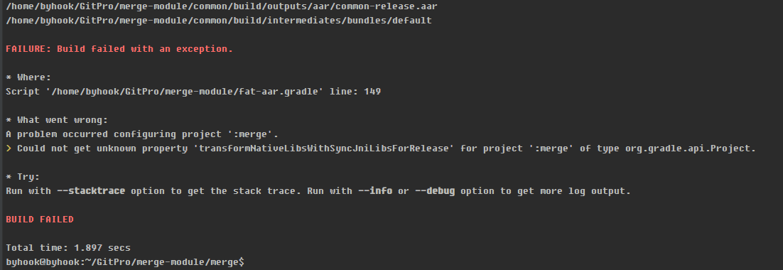 这种方案具备良好的可行性,因为最终合并的文件只有一个,便于混淆,遗憾的是Android官方并没有提供这种合并的操作,但是发现github上有作者开源了一个合并脚本[fat-aar.gradle](https://github.com/adwiv/android-fat-aar),这个脚本的作用实际就是合并我们的多个组件为一个aar
