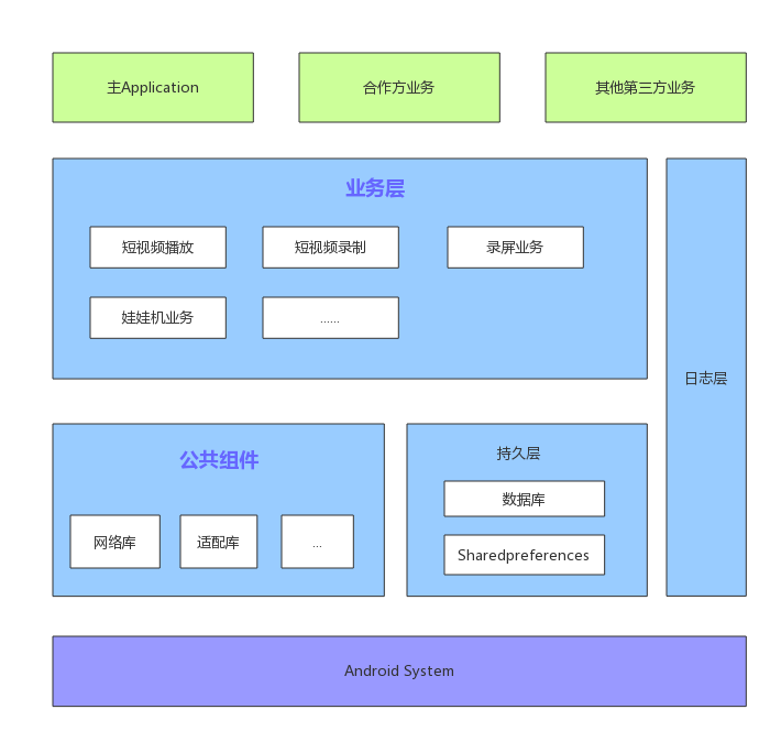 简单介绍一下项目情况,笔者做这个项目快两年了,之所以有这篇文章,源于项目的需求,因为项目除了公司内部使用,还需要抽取sdk给第三方合作公司使用,并且不同的合作方可能会对sdk作改动,A公司可能不要录屏功能,B公司可能只要视频播放功能,不要视频发布,如何在不侵入我们主版本业务的情况下解决这个问题呢?