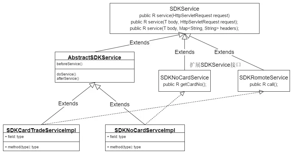 SDKService最顶层的抽象,一般业务类不需要实现它,需要需要扩展该接口,直接继承即可。