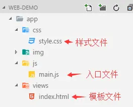 一切开始之前先构建一下我们的项目结构,新建一个web-demo的文件夹,里面具体文件结构看下图