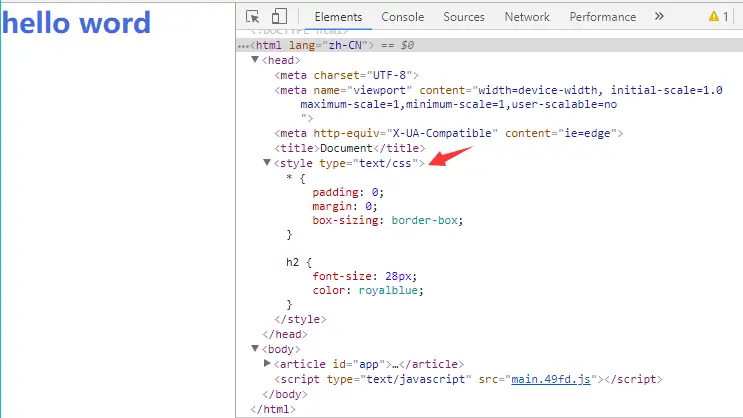 可以看到,这时候的css样式是以style标签的形式嵌入的,我们需要的是应该以link的方式引入的才对。