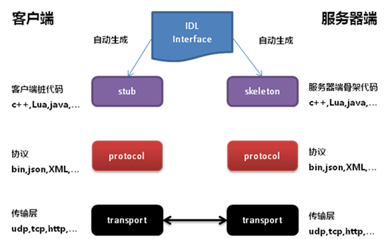 2. 使用IDL来生成接口定义:由于企业服务或游戏服务,其开发语言可能不是统一的,又或者需要高性能的编程语言如C/C++,所以只能使用IDL。