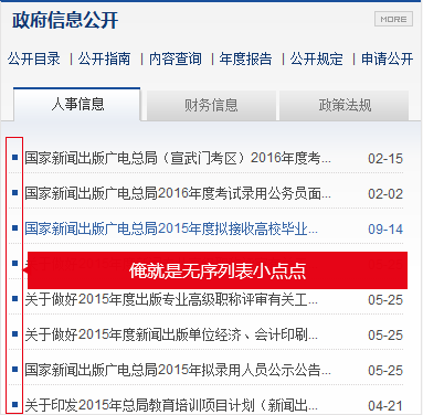 当然由于政府网站的特殊性,以信息展示为主,这么设计也是可以,但是过多的无序列表应用会造成主次不清的后果,严重者会像文章头图一样造成视觉的不适。