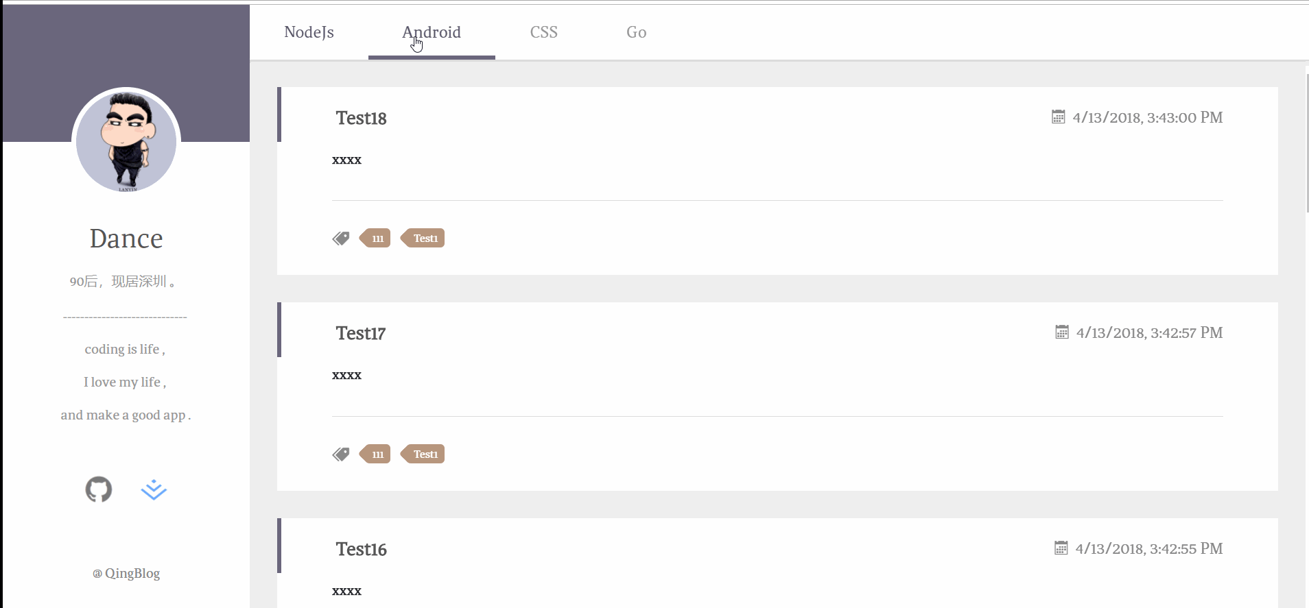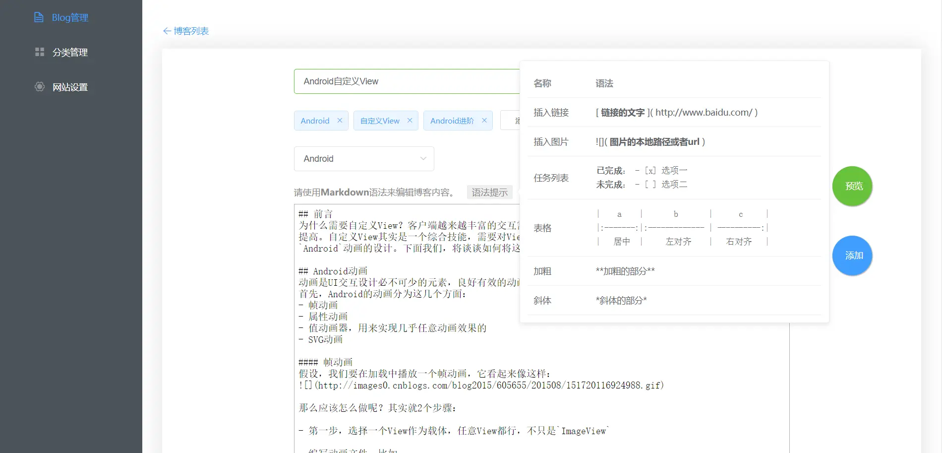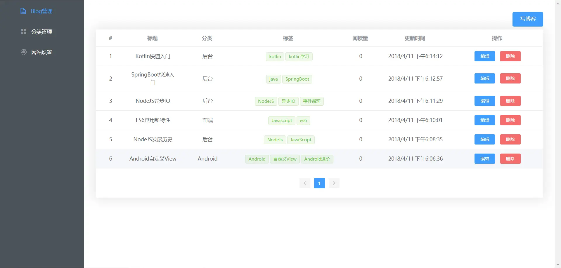 Qing博客系统,基于Vue2套件,axios, ElementUI, KOA构建的博客系统! Junjun 2018-06-21 287 阅读1分钟 前端地址:https://github.com/li-xiaojun/QingBlogFrontend后端地址:https://github.com/li-xiaojun/QingBlogBackend项目截图: