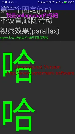 7. 告你一个惊天大幂幂:只要CollapsingToolbarLayout里面包含有toolbar那么CollapsingToolbarLayout的折叠后高度就是toolbar的高度,相当于CollapsingToolbarLayout设置了minHeight属性