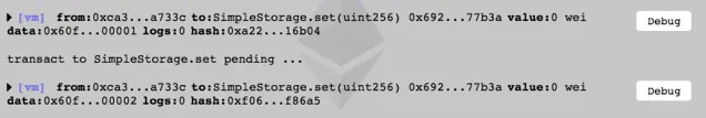在我们每次执行一个交易(不管是方式调用还是函数执行)的时候,在日志都会输出一条记录,如图: