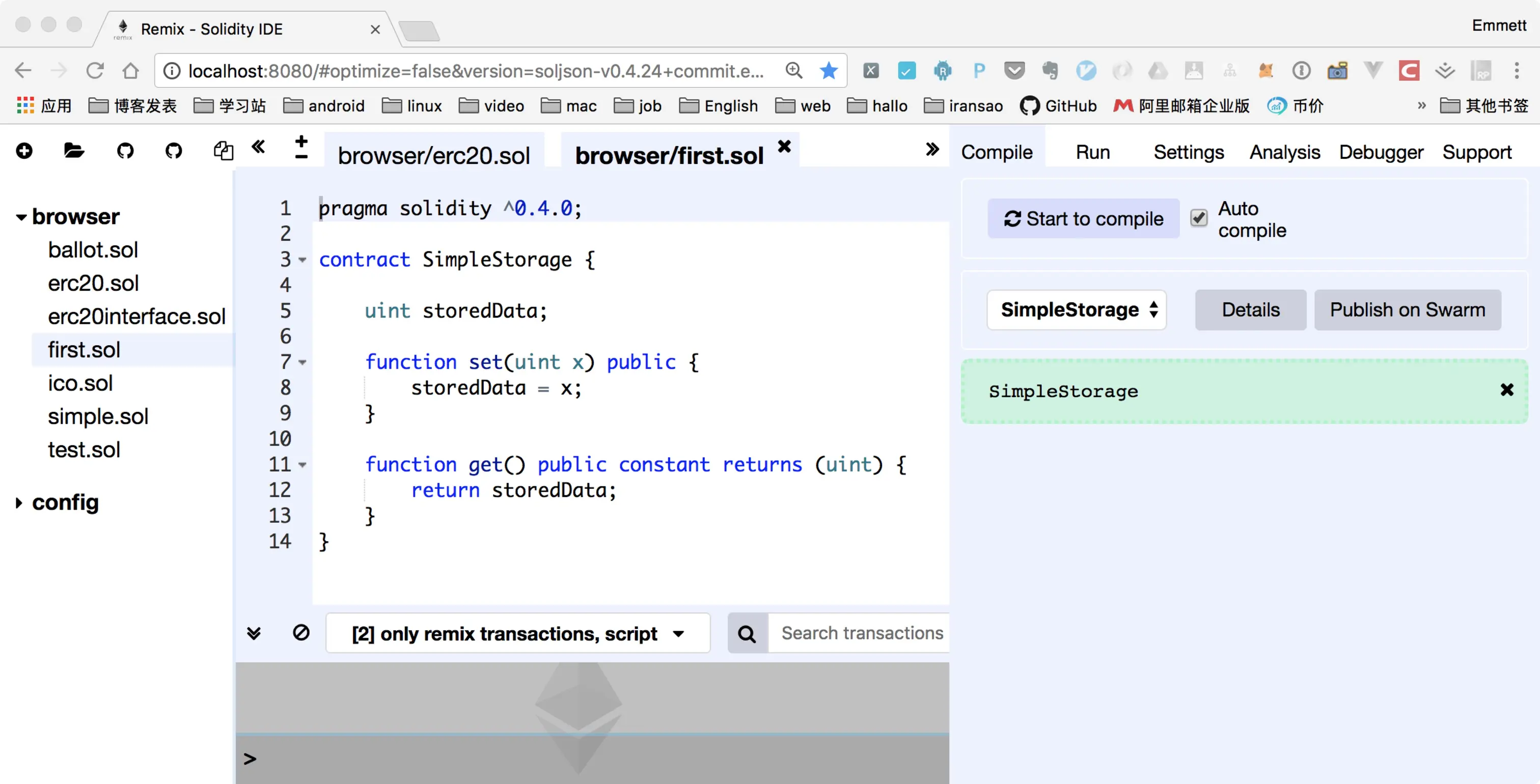 Remix IDE 是一款基于浏览器的IDE,跟有些开发聊的时候,发现有一些同学对浏览器的IDE,有一些偏见,其实Atom编辑器就是基于web技术开发的一款编辑器(Atom可以看做一个没有地址栏的浏览器),其实基于浏览器的IDE,有一个很大的好处就是不用安装,打开即用。