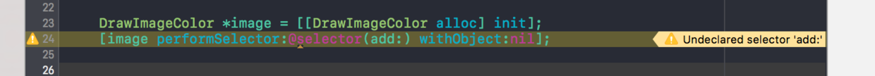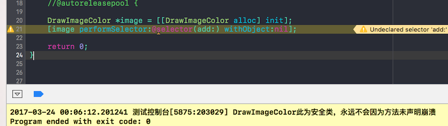 就是这样一个DrawImageColor这个类,创建了一个对象,然后利用performSelector去执行一个未声明的方法,不能直接[image add]这样调用,这样编译都不会通过,会直接报错,所以为了通过编译就采用这样的方式去调用
