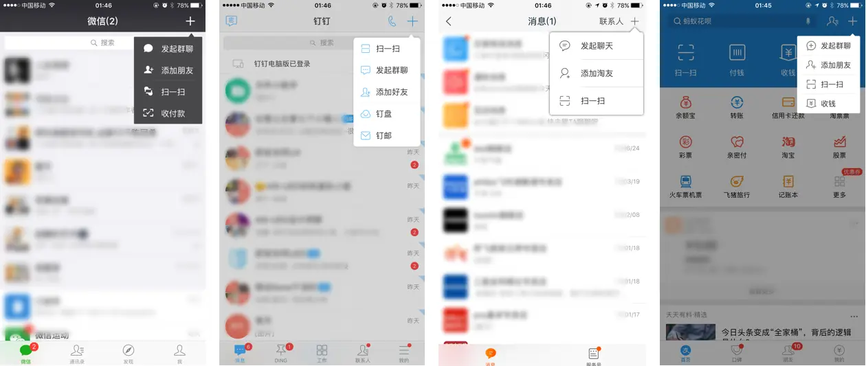 ——微信,钉钉,手机淘宝,支付宝