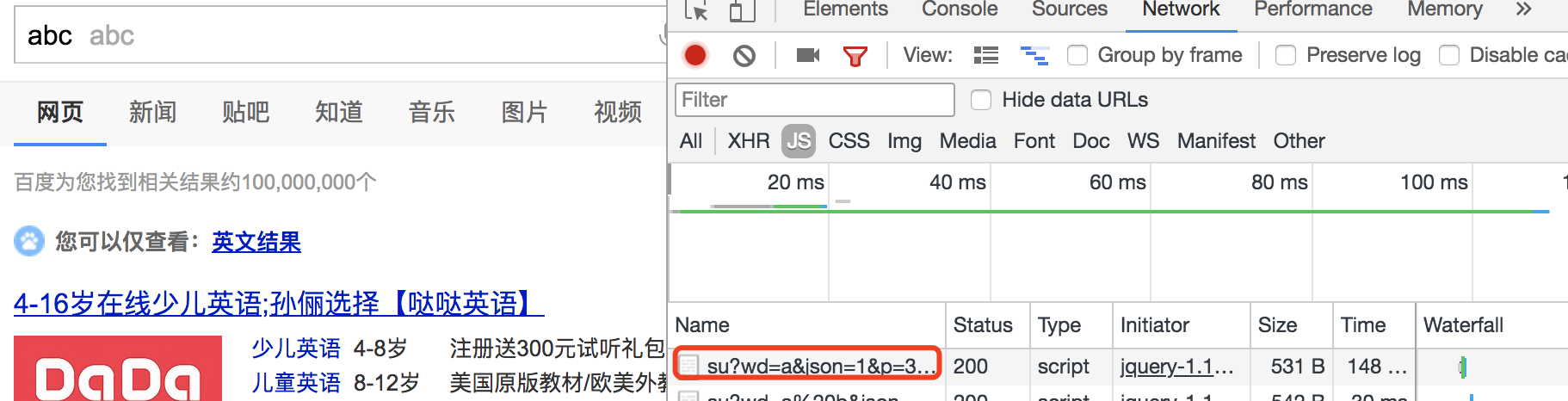 这是一个标准的jsonp接口,它原理呢,就是利用我们<link>,script,img,等引入方式是不受通源策略的,打开地址https://sp0.baidu.com/5a1Fazu8AA54nxGko9WTAnF6hhy/su?wd=a&cb=show出现show({q:"b",p:false,s:["baidu","bt","btchina","beyond","bbs","bbc","blog","bobo组合","bb霜"]});