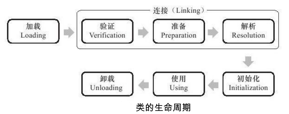 - 假如这个类还没有被加载和连接,则程序先加载并连接该类