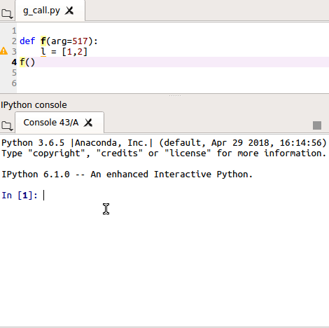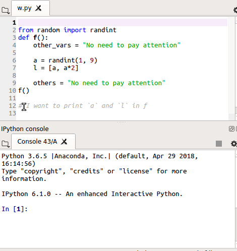 在函数内运行 g(),便会将函数 (或 module) 内的所有变量一同传到当前的 Python 交互终端
