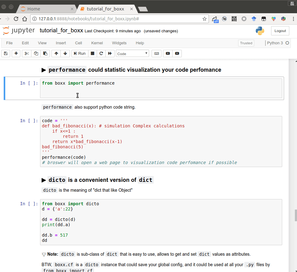 教程:boxx 的教程是一个可执行的在线 Notebook。 也就是说,无需下载和运行任何代码,只需浏览器点击下面的链接,就可以在线执行 Notebook 教程中的代码块。