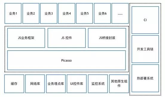 通过Picasso的桥接能力,基于Picasso的上层应用程序仍然可以利用集团内部移动技术团队积累的高质量基础建设,同时已经形成初步的公司内部大生态,多个部门已经向Picasso生态贡献了动画能力、动态模块能力、复用Web容器桥接基建能力、大量业务组件和通用组件。