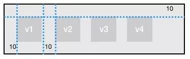 hlayout([v1, v2, v3, v4], { top: 10, left: 10, divideSpace: 10 })