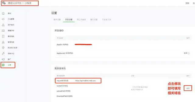 登录 微信公众平台 将MobLink提供服务的域名:https://api.moblink.mob.com 加入到微信公众平台安全域名列表中,如下图: