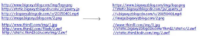这样的站点,可以努力推动所有相关域名升级为支持 HTTPS 。我们用下图举例说明下这样修改会导致一个网站的链接发生怎样的改变。