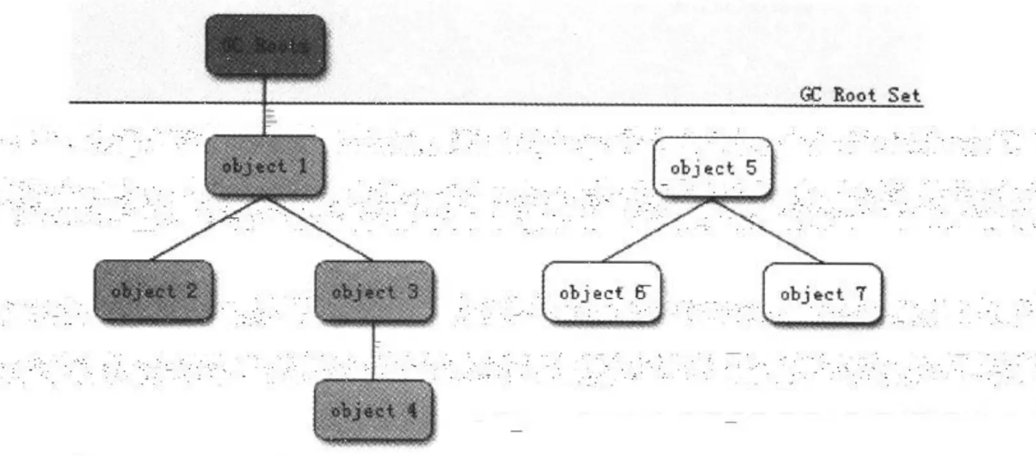 则证明此对象是不可用的。如下图所示:对象object5,6,7虽然互相有关联,但是他们到GC Roots是不可达的,所以他们将会被判断为是可回收的对象。